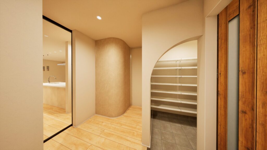 - ◆ 玄関からパントリー、キッチンへと淀みなくつながる「暮らしを整える動線」