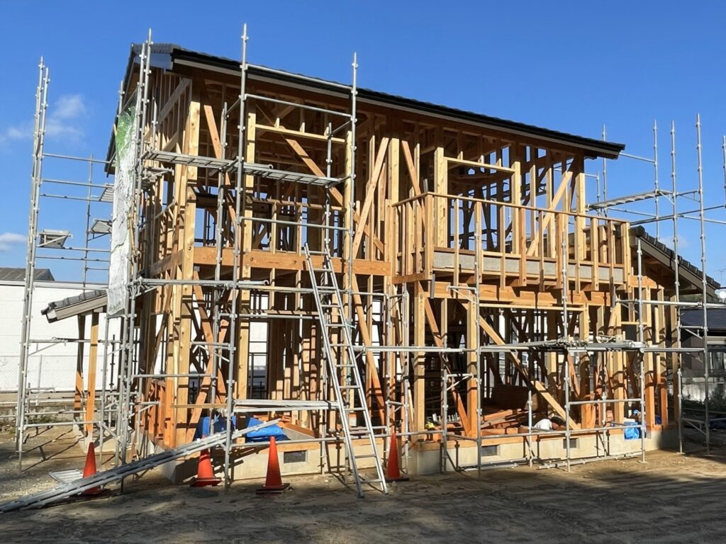 現場で家の骨組みが完成した姿を見ると、家づくりが現実になった実感が湧いてくると思います^_^